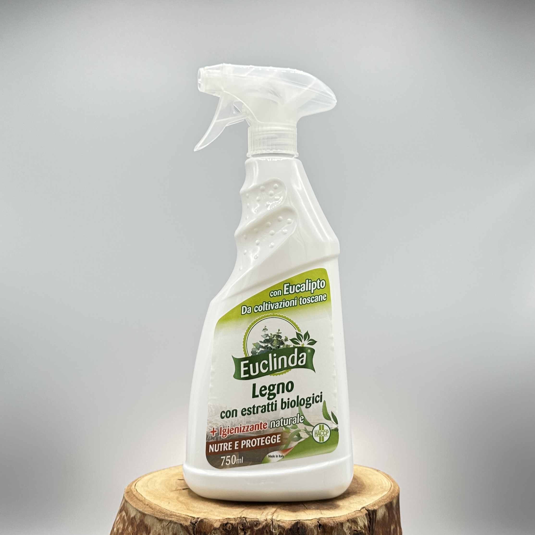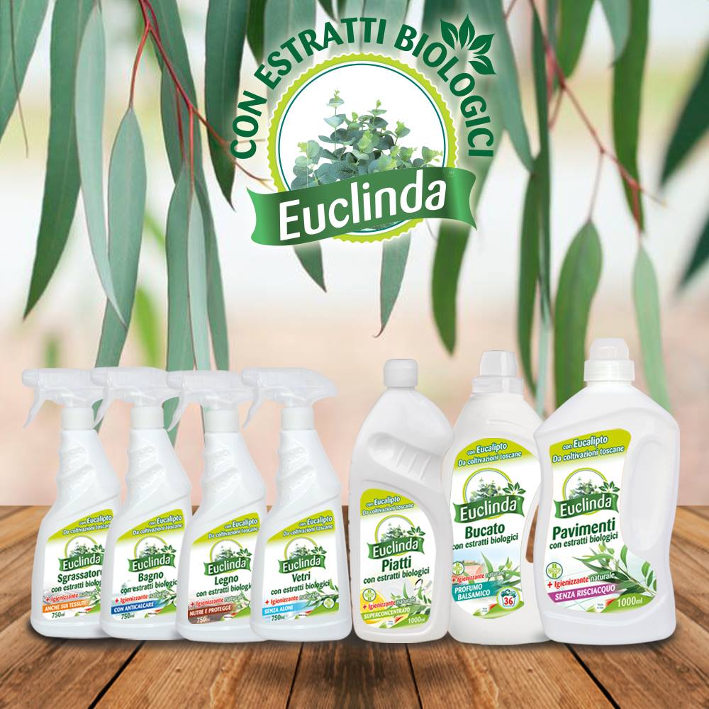 Detersivo Legno Euclinda con estratti di eucalipto biologico toscano Oligea, nutre e protegge il legno dei vostri mobili, elimina ogni traccia di sporco e di polvere, lasciando un gradevole profumo di fresco. Ideale sia per gli ambienti domestici sia per i luoghi di lavoro (es. uffici, alberghi, ristoranti ecc.) grazie alla conformità HACCP.