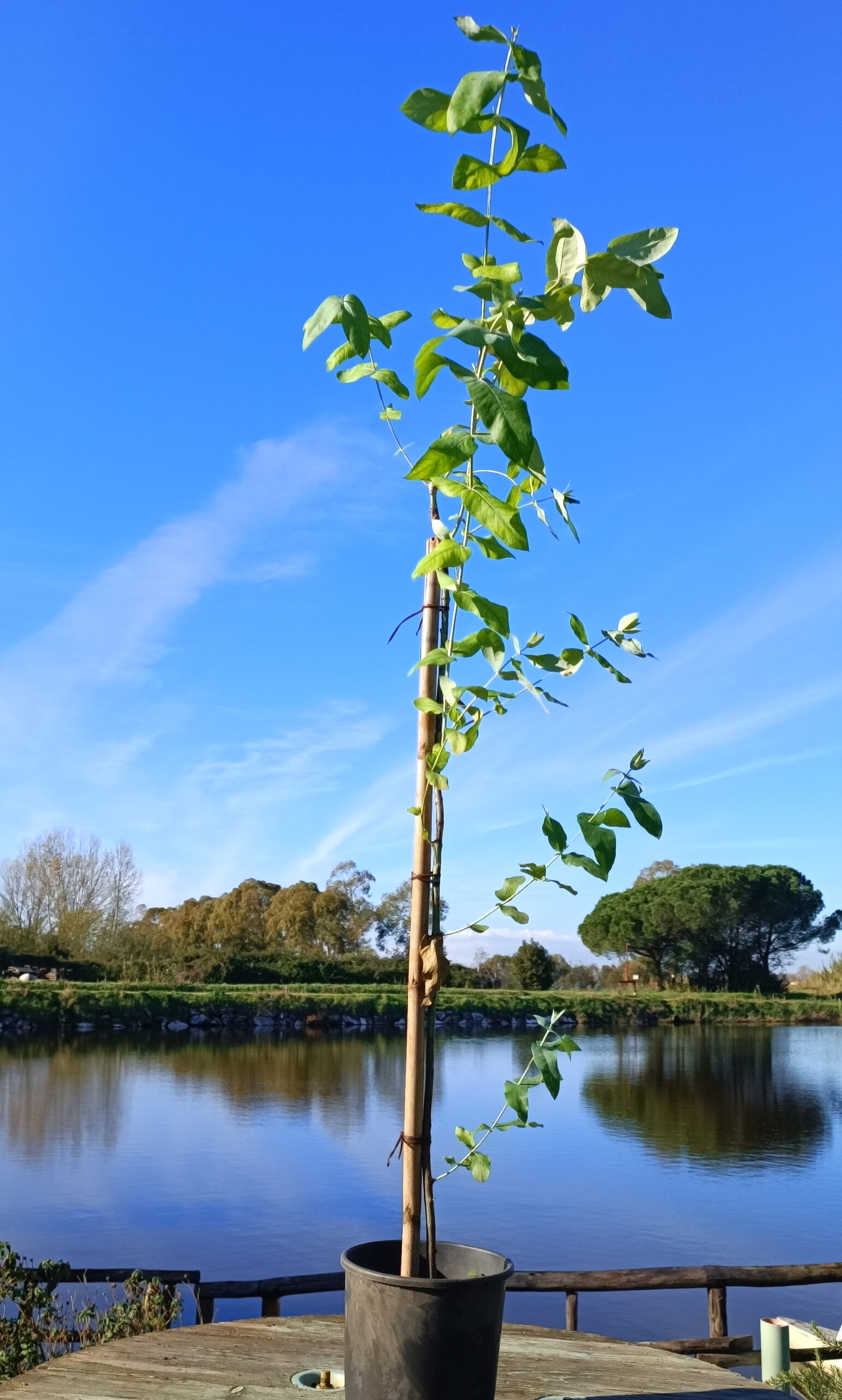 Pianta di Eucalipto varietà Globulus altezza 100 cm circa coltivata in Toscana, presso l’azienda agricola biologica di famiglia Versil Green.