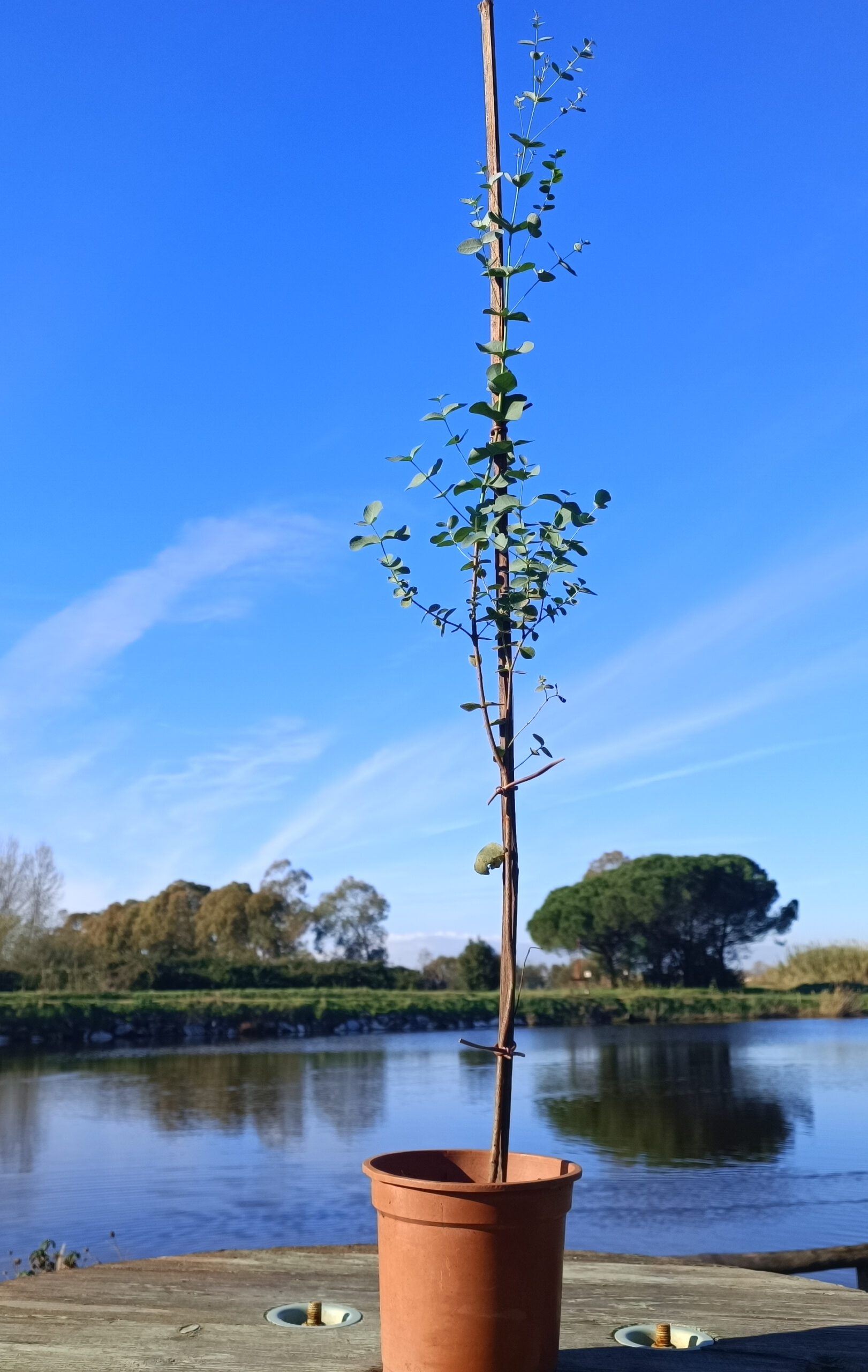 Pianta giovane di Eucalipto varietà Gunnii coltivata in Toscana, dall’azienda agricola biologica di famiglia Versil Green.